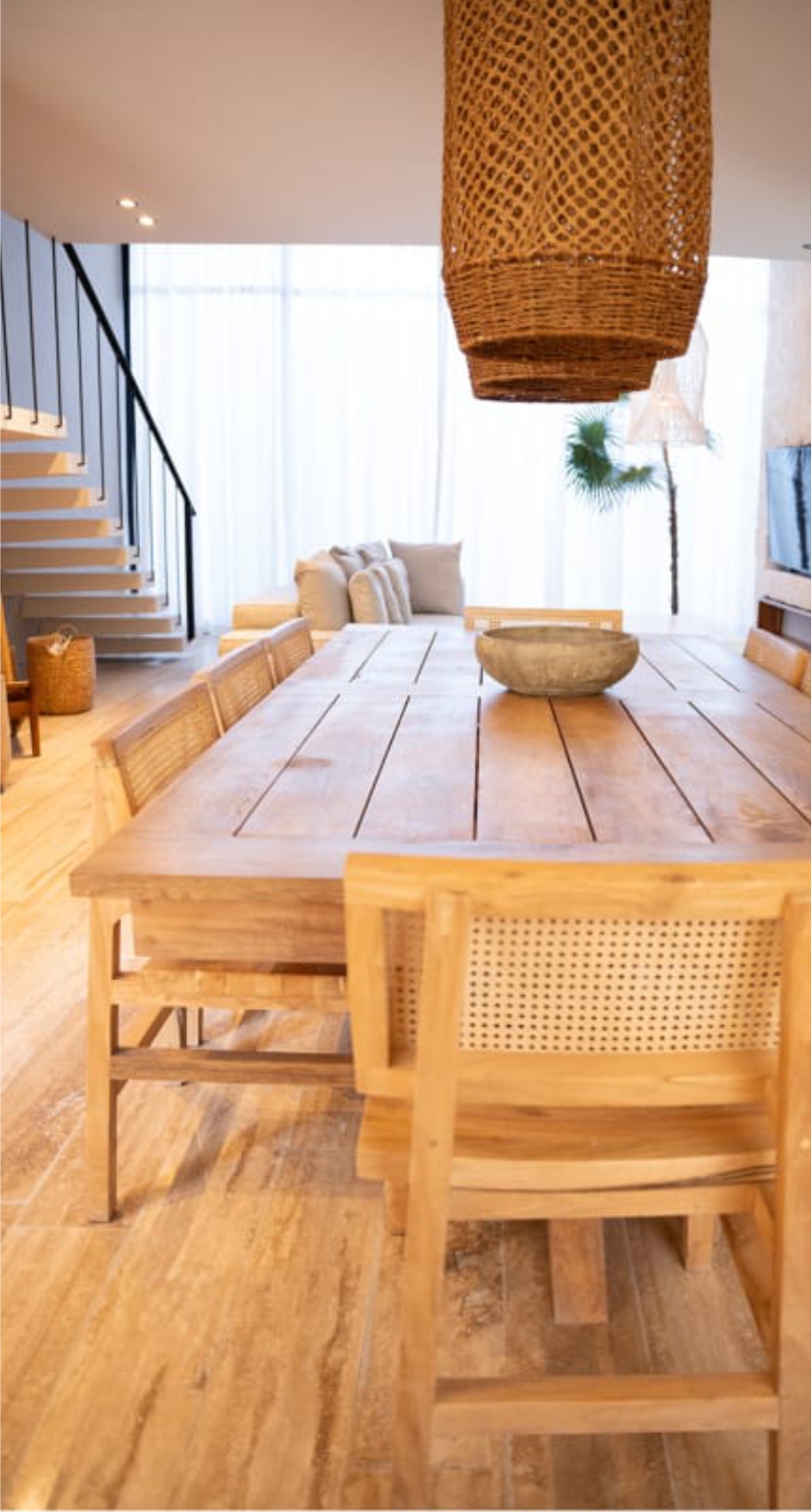 Cada casa cuenta con cocina, sala con doble altura, 2 habitaciones con cama King size, 1 habitación con cama Queen size y una habitación con dos camas individuales, lavadora y secadora de ropa.